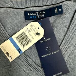 New with Tags, Nautica Navtech V-Neck Deck Sweater Pullover, Color is called "Deep Anchor" (Light Blue), Men's Size XL, Retailed $69.50.