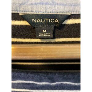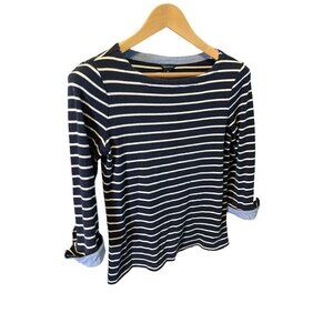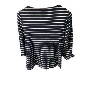 Nautica Navy Blue Boatneck Horizontal Stripe 3/4 Sleeve Pullover Top Sz M