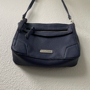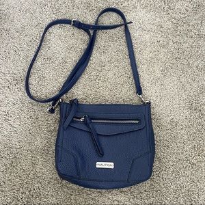 Nautica Navy Blue Faux Leather Crossbody Bag, adjustable and removable strap. silver hardware. Minimal signs of wear