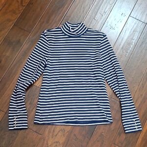 Nautica Navy Blue and Pink Fitted Ribbed Long Sleeve Mock Turtleneck size XL