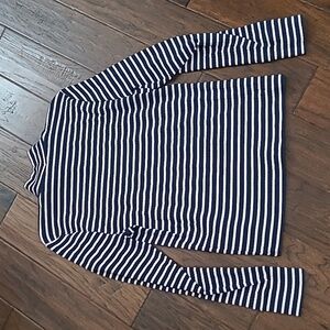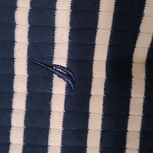 Nautica Navy Blue and Pink Fitted Ribbed Long Sleeve Mock Turtleneck size XL. The fitted design and ribbed texture provide a flattering silhouette, while the long sleeves ensure comfort and style. Perfect for casual outings or layering, this top is a versatile addition to any wardrobe.