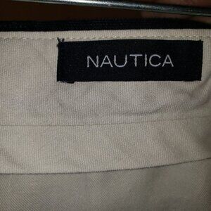 Elevate your professional or casual wardrobe with these classic Nautica navy dress pants. Crafted for comfort and style, these size 34x32 pants offer a versatile navy hue that pairs effortlessly with a variety of shirts and jackets. The flat front design provides a clean, modern silhouette, making them perfect for business meetings, special occasions, or even a smart-casual outing. Invest in timeless style and lasting quality with these essential Nautica trousers.