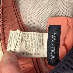 Nautica Navy Pink Striped Swim Trunks