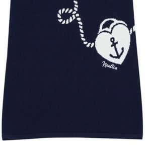 Up for purchase is a brand new/ NWT Nautica sweater dress. This is the Trompe L'oeil navy sweater dress. The dress has short sleeves, a round neckline and ribbed cuffs. The front of the dress has an appliqued image of a heart shaped purse adorned with an anchor complete with with a rope strap. Size Guide L = 12/ 14