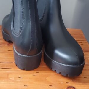 Stylish black rain boots for throwing on quickly on the go for a snowy, muddy, rainy or sludgy day.