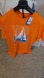 Bold orange t-shirt with a striking sailboat design. Features blue and white accents. Nautica logo displayed.
