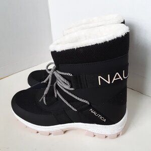 brand new with tag, no box. Nautica Palo Verde women's winter black pink color boots size 7M. nylon upper. Padded tongue & collar. Traction sole. 13-in. circumference. Round toe. Lace-up closure. Memory foam footbed. pet and smoke free home.
