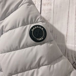 Nautica Performance Jacket. New with tags. Ladies, Size Large. Silver grey, color. Comfort Stretch, Water Resistant & Detachable Hood.