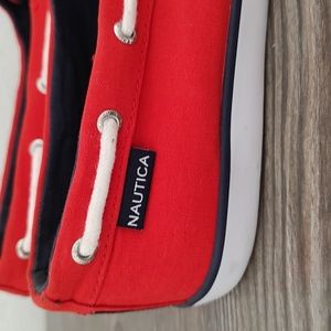 Nautica Pinecrest Red Slip On Canvas Boat Shoe Sneakers Navy Trim White Tie 7