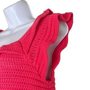 Nautica Womens Medium Crocheted Pullover Top Pink Square Neck Short Sleeve NWT