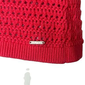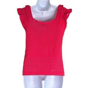 Nautica Pink Crocheted Pullover Top Square Neck Short Sleeve Medium NWT Preppy