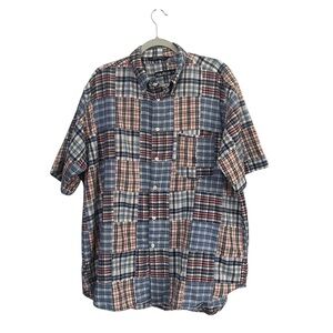 Nautica Plaid Patchwork Button Down Short Sleeve Shirt L