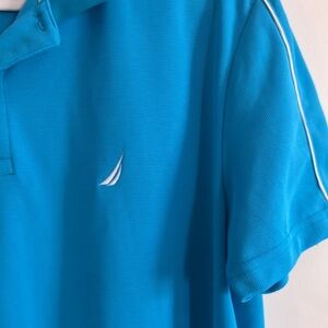 Nautica Polo A Bit Trimmer Aqua Blue Sporty Preppy Casual L Golf Vacation