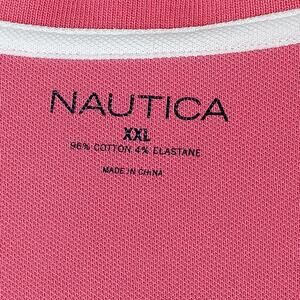 Nautica Polo Blouse Size XXL Pink Collared V Neck Short Sleeve White Trim
