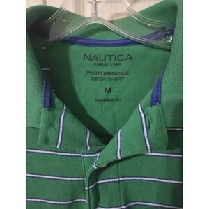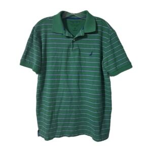 Nautica Polo Shirt Green Striped Short Sleeve, Medium