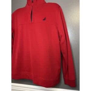 Nautica Pullover Mens Large Red Quarter Zip Sweatshirt Embroidered Logo Classic
