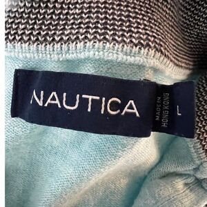 Nautica Quater Zip Teal Blue Turquoise Mens Sweater Pullover Size L Sweater