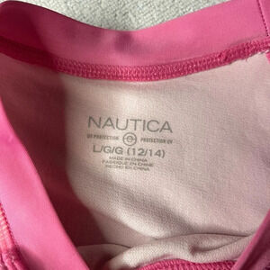 Nautica rash guard in a size large, 12/14. Excellent condition and cute colors, little accent tie in the front.