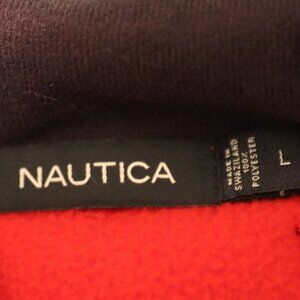 Nautica Red & Black Quarter Zip Feece Mock Neck Pullover Men's Large Outdoors