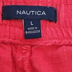 Nautica Red Drawstring Waist Slashed Pockets Shorts Large Lightweight Soft Linen