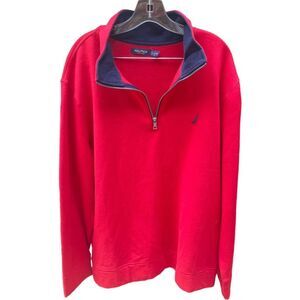 Nautica Red High Neck 1/4 Zip Pullover Sweatshirt Size XXL Yacht Deck Style