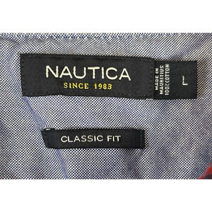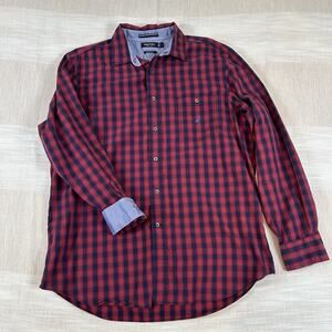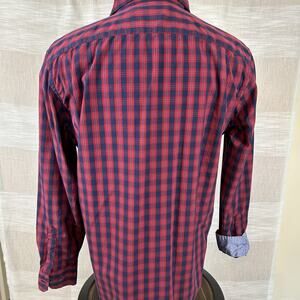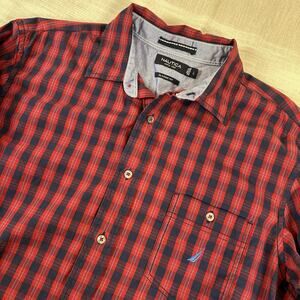Nautica Red Navy Plaid Men's Size Large Long Sleeve Shirt L Flip Cuff