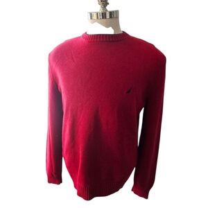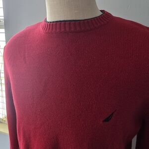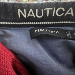 Nautica Red and Navy Men's Sweater Crewneck Cotton Sweater Size Large Logo