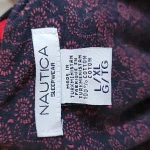 Red with gold floral patterned robe from Nautica Sleepwear size L/XL, in great condition. Fits like a medium/large fashion robe. Does not come with sash.