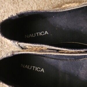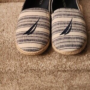 Nautica "Rudder J-Class" Blue & White Stripe Espadrille Flat Slip-ons Size 7.5