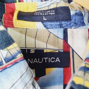 Nautica Sail Boat Sailing Short Sleeve Button Down Shirt Sz L