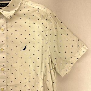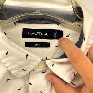 Nautica Shark Print Button Up Short Sleeve Shirt Mens Size L Slim Fit