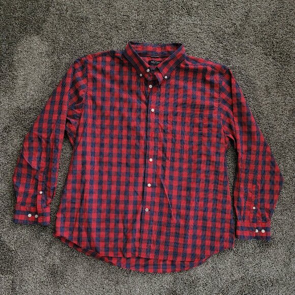 **Nautica Shirt Adult XXL Red Plaid Long Sleeve Casual Button Up Pocket Mens 2XL