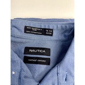 Nautica Shirt Mens 16.5 16 1/2 32 33 Blue Casual Button Up Long Sleeve Vintage Oxford