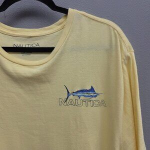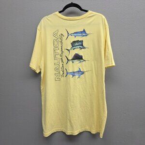Nautica Shirt Mens 2XL Yellow Graphic Marlin Sailfish Fishing Short Sleeve Tee
