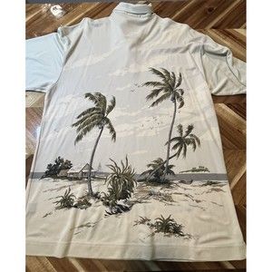 Nautica Shirt Mens XL Hawaiian Silk Short Sleeve Button Up Beach Front and Back