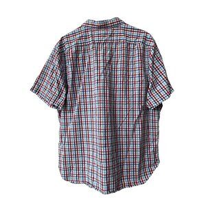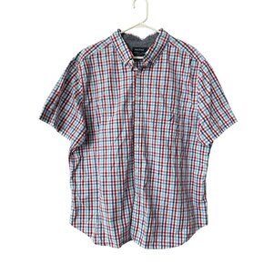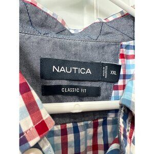 Nautica Shirt Size XXL Plaid Short Sleeve Button Up Classic Fit Blue Red Preppy