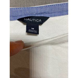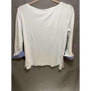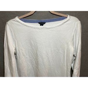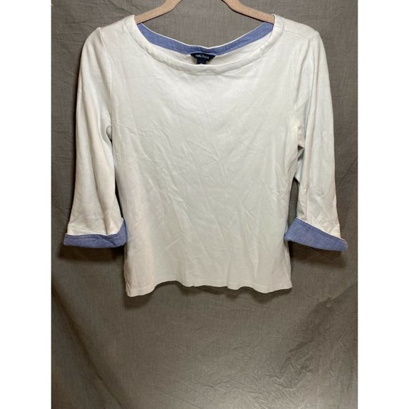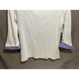 Nautica Shirt Womens Medium White Round Neck Contrast Cuff Long Sleeve Ladies.