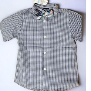 Short sleeve plaid shirt bowtie with jogger pants set