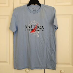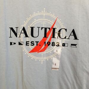 Nautica Short Sleeve Light Blue Logo Size Large T-shirt Graphic on front 197