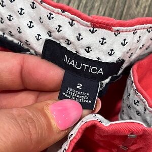 Nautica Shorts Mid Rise Flat Front Cotton Blend Stretch Chino Khaki Red Size 2