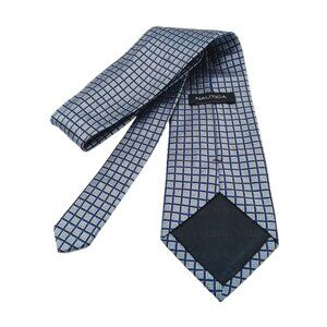 Nautica Silk Tie Men’s 59.5” Blue Yellow Geometric Square 90s Coastal Wide New