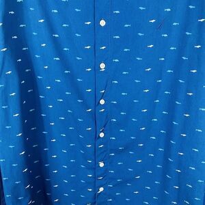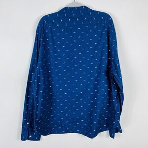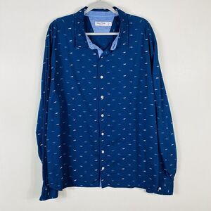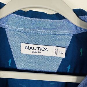 Nautica Size 3XL Slim Fit Shark Motif Long Sleeve Button Down Shirt Blue Cotton