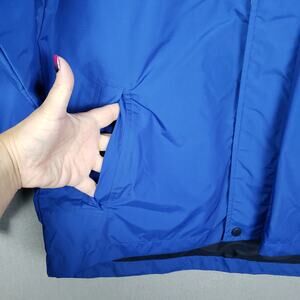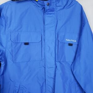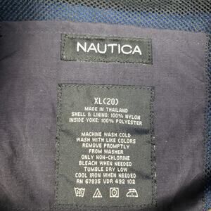 Nautica Size XL Hooded Nylon Windbreaker Jacket Blue Outdoorsy Fisherman Utility
