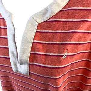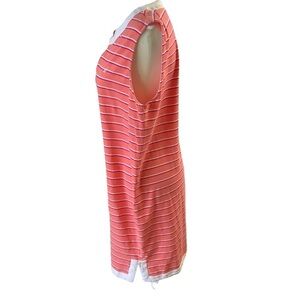 Nautica Sleeveless Shift Tee Dress Women L XL Orange with Red White Stripes