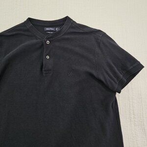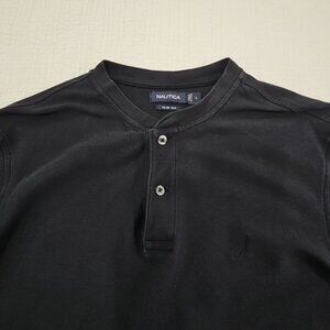 Nautica Slim Fit Heavy Crew Neck Shirt Men's Large Dark Navy Blue EUC LN