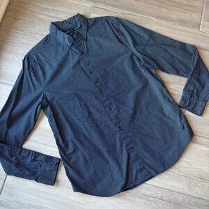 Nautica Slim Fit Men's Navy Dotted Long Sleeve Button Down - Medium
