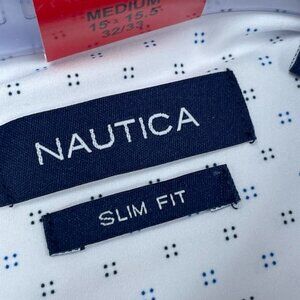 Nautica Slim Fit Performance Dress Shirt M 15-15.5 White Pattern a1240