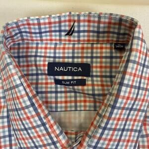 Nautica Slim Fit Red, Blue & White Plaid Button-Down Shirt – Size XL