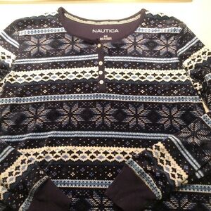 Nautica Snowflake Henley Long Sleeve size Medium- slightly longer in the back