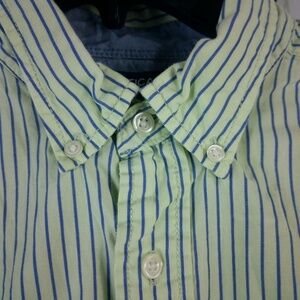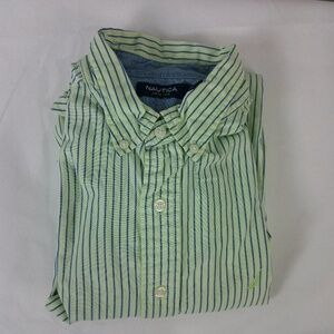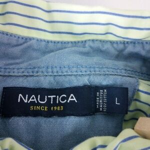 Nautica Lime Green Blue Striped Button Down Men's Dress Shirt L